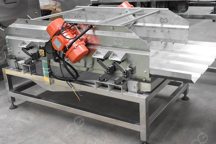Машина для вибрационного обезжиривания в основном используется для удаления масла из обжаренных материалов, а также для удаления воды из очищенных материалов. Обжаренный материал подается на вибросито и вибрирует вперед через эксцентриковое устройство, которое играет роль обезжиривания и имеет высокую эффективность работы. Это оборудование обычно используется на линиях жарки и является одним из распространенных устройств для обезжиривания.